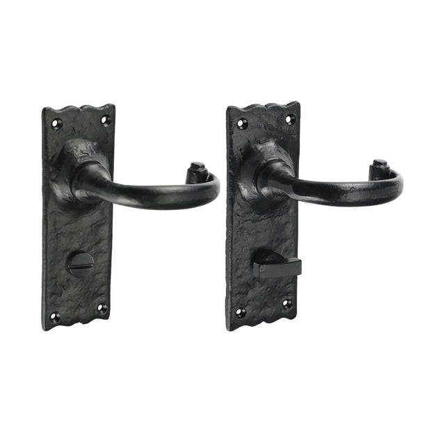 Traditional Bathroom Thumb Turn Lock Door Handle – Antique Black Iron - 155 × 54